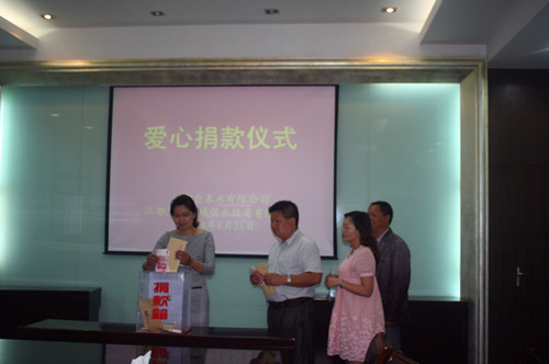 近日,區(qū)自來水公司、惠民公司主動結合黨的群眾路線教育實踐活動“惠民實事工程”的開展,積極響應市民觀察團和小艷子志愿者協(xié)會的倡議,在公司內進行廣泛深入宣傳,組織廣大干部職工為武堅鎮(zhèn)身患尿毒癥的女大學生凌金華進行愛心捐款。在6月26日下午的捐款儀式上,公司領導和水益坊志愿者組織、三大創(chuàng)建班組(便民維修班、中心化驗室、城區(qū)供水服務中心)以及勞模先進代表踴躍帶頭,公司各部門干部職工積極參與,紛紛伸出援助之手,慷慨解囊,奉獻出自己的愛心,在不到1個小時的捐款活動中,共募集12600元愛心善款。此筆捐款已于6月28日隨區(qū)市民觀察團、小艷子志愿者協(xié)會、江都論壇的特別“愛心快車”送到正在上海住院治療的凌金華手中。