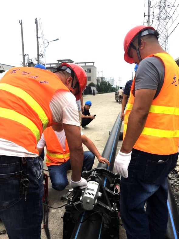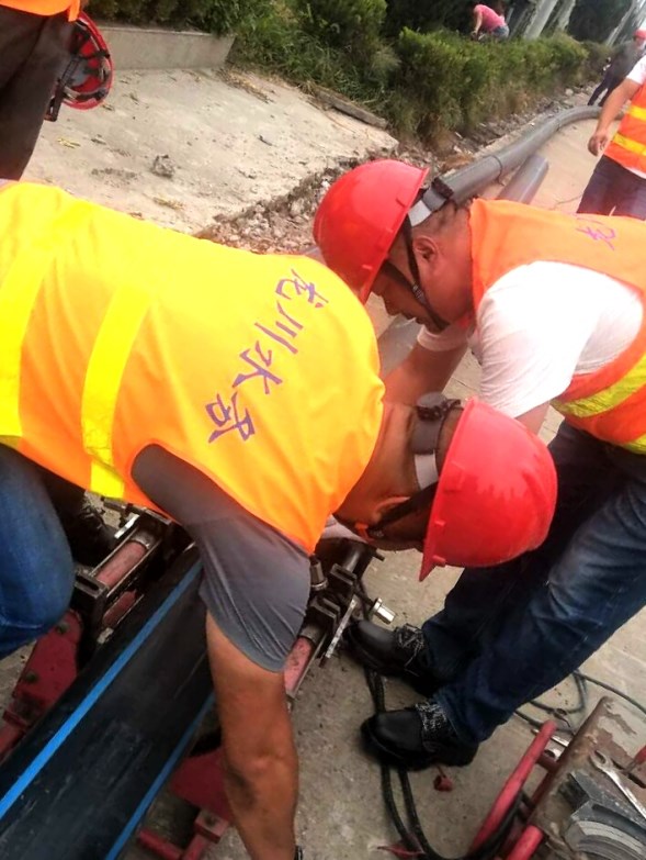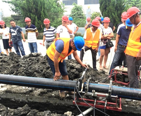 2018年9月6日上午,江都區(qū)武堅鎮(zhèn)開發(fā)區(qū)DN200PE管道施工現(xiàn)場打破了往日的沉悶,一輛輛工程施工車輛整齊地停放在道路一側(cè),揚州市惠民區(qū)域供水投資有限公司各鄉(xiāng)鎮(zhèn)供水所和測漏維修隊將在這里進行PE管熔焊技術(shù)實踐演練活動。