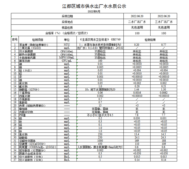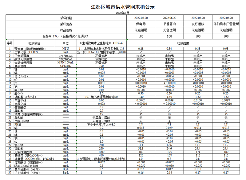 水質(zhì)公示