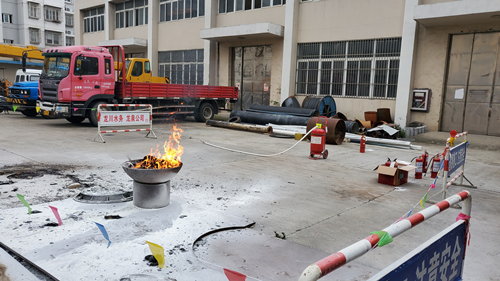 在演練前已做好前期準備工作。在安全距離布置演練設圍擋、拉三角旗,畫定演練核心區域的警示線,同時在火點畫定安全距離園圈,保護演練人員的安全。