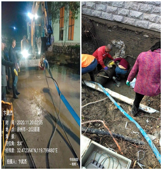 “郭村泵房外水管爆裂,情況緊急,請快速前往搶修”。11月19日晚上11時許,水務集團客服中心接到報修電話后立即與下屬龍泉公司維修部門取得聯系。