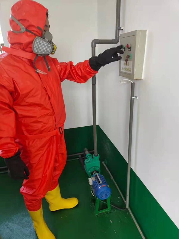 污水公司安全主任謝觀遠還根據(jù)相關活動議程和要求,按照公司編制的次氯酸鈉泄漏應急預案,帶領安全員及運營工開展了次氯酸鈉演練活動。