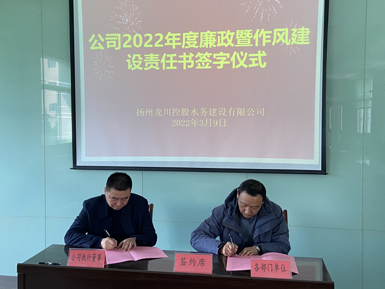 總之,通過本次《責任書》的簽訂,將進一步強化各級的責任擔當,層層壓緊壓實相關責任,使各級主體責任落地生根。同時也將不斷進一步推進公司廉政工作和作風建設向縱深開展,黨風廉政和作風建設教育也更趨常態化、全覆蓋,使全體水務干部職工更為牢固樹立起紅線和底線意識,從而為打造一支風清氣正、務實高效的水務干部職工隊伍和公司的行穩致遠發展起到更為良好的保駕護航作用。
