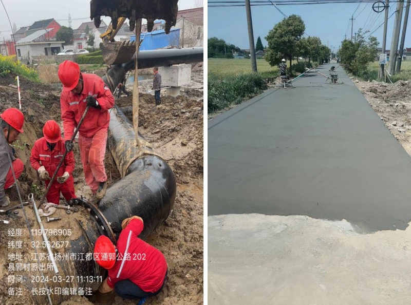 本次施工過程難度大,時(shí)間緊,作業(yè)人員不分晝夜,不懼艱苦,于2024年5月完工,并幫老百姓恢復(fù)損壞的路面。
